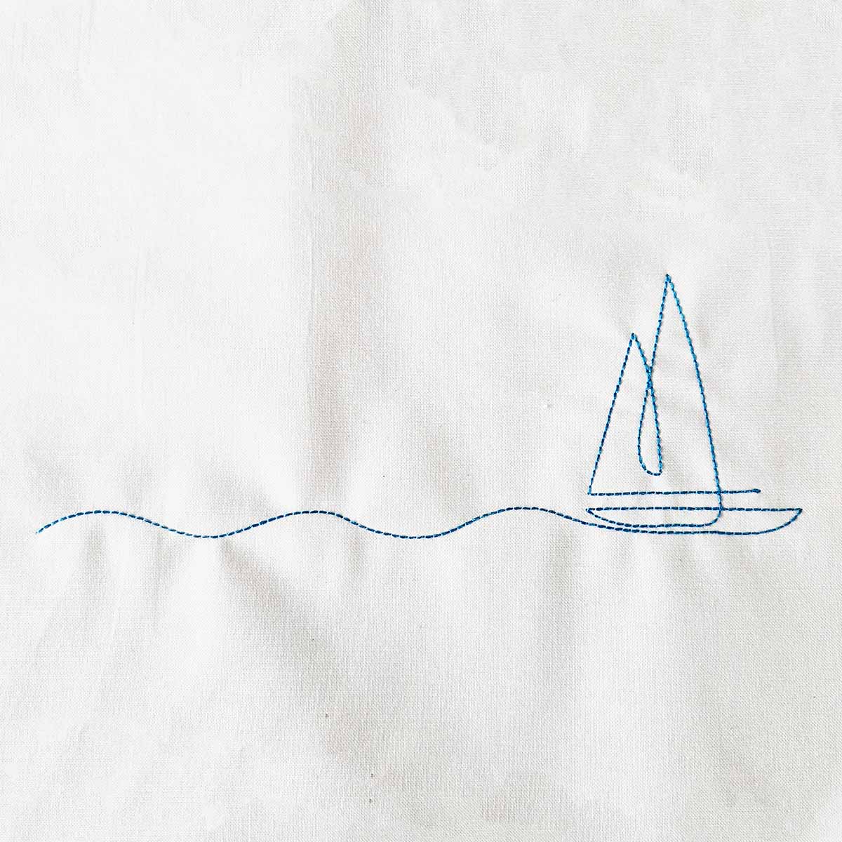 Light and elegant sailboat embroidery design with a flowing wave. Perfect for summer, beach bags, and maritime projects.